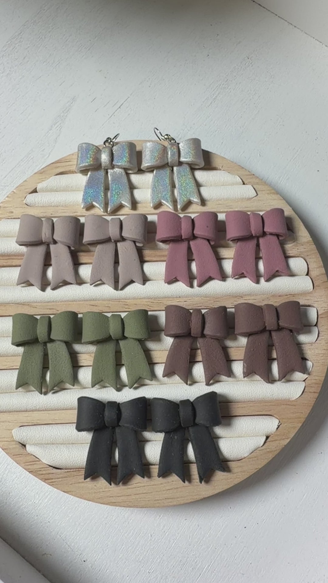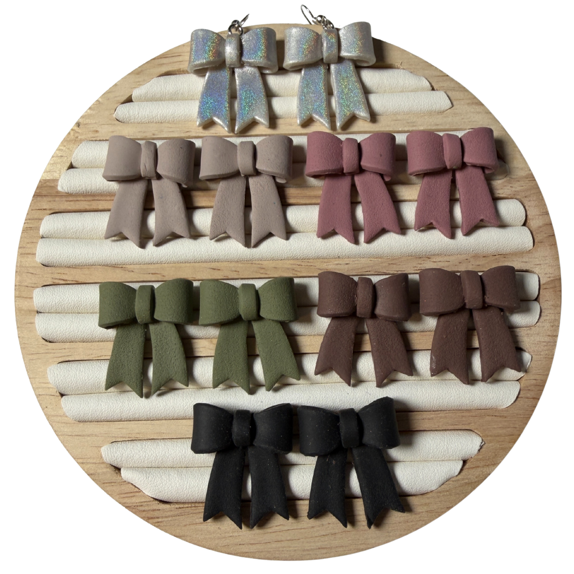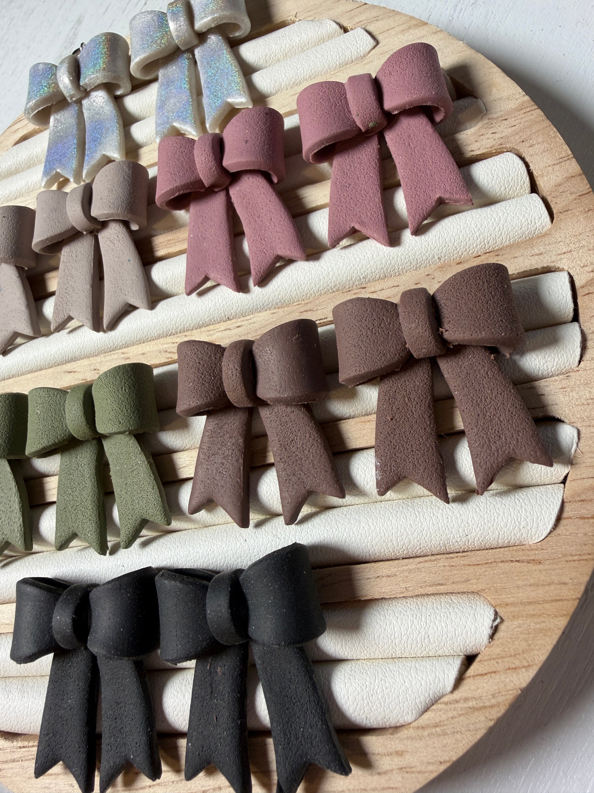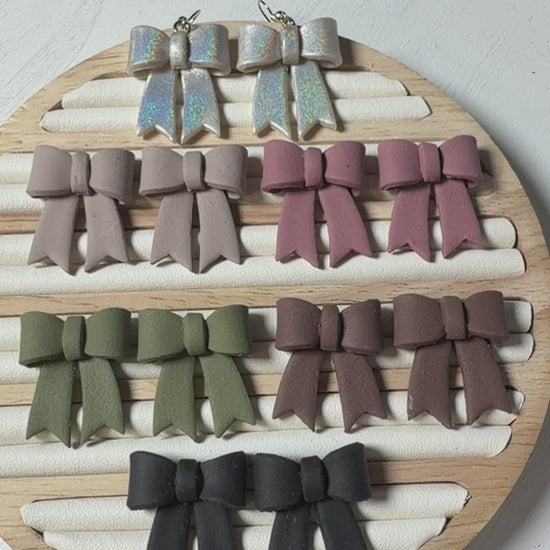 Classic Hand-Folded Bow Polymer Clay Dangle Earrings