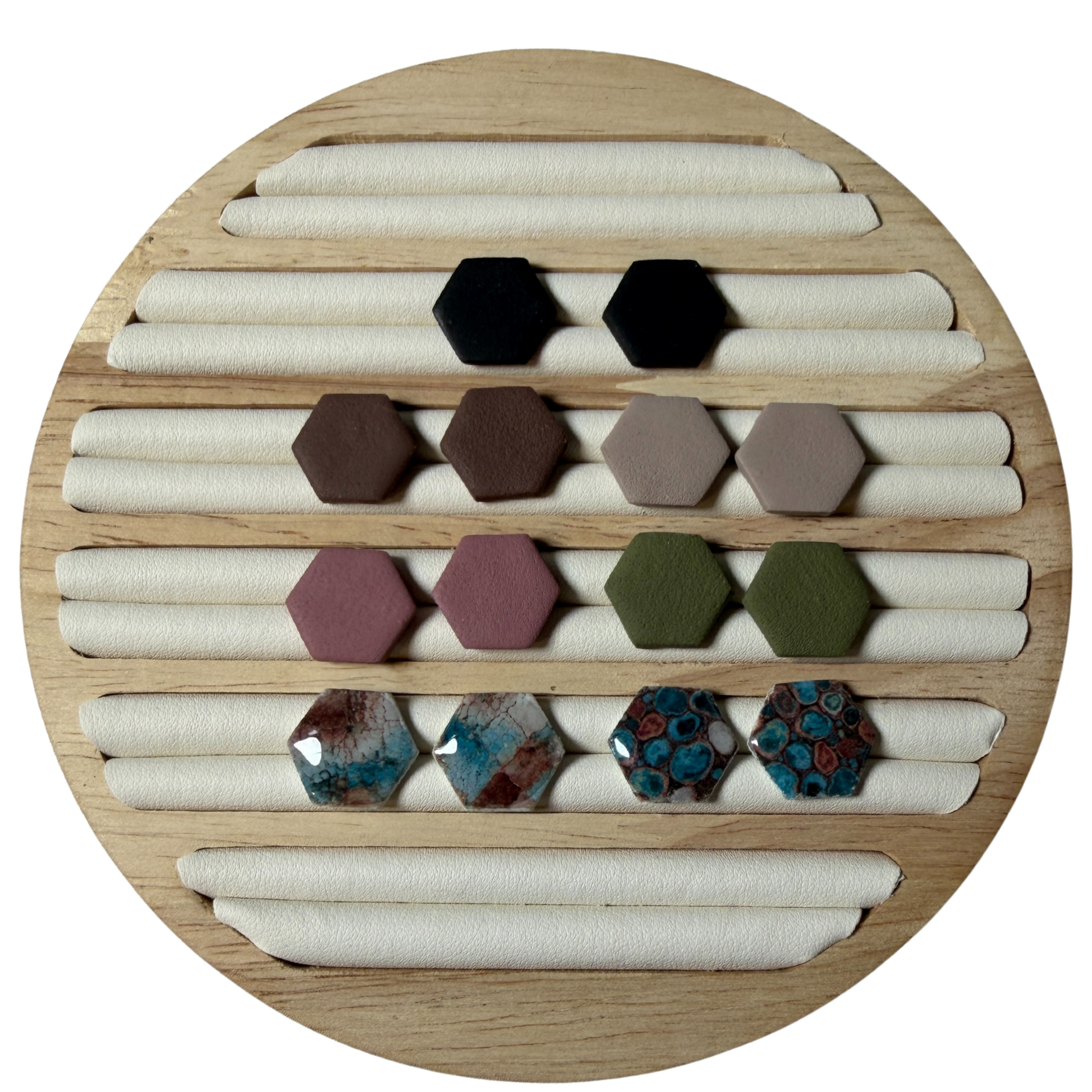 Clean lines meet everyday versatility with these classic hex stud earrings. Designed with a modern geometric shape, they’re simple enough for daily wear yet bold enough to make a subtle statement. Available in a variety of earthy tones, soft neutrals, and patterned finishes to match every mood and outfit.
