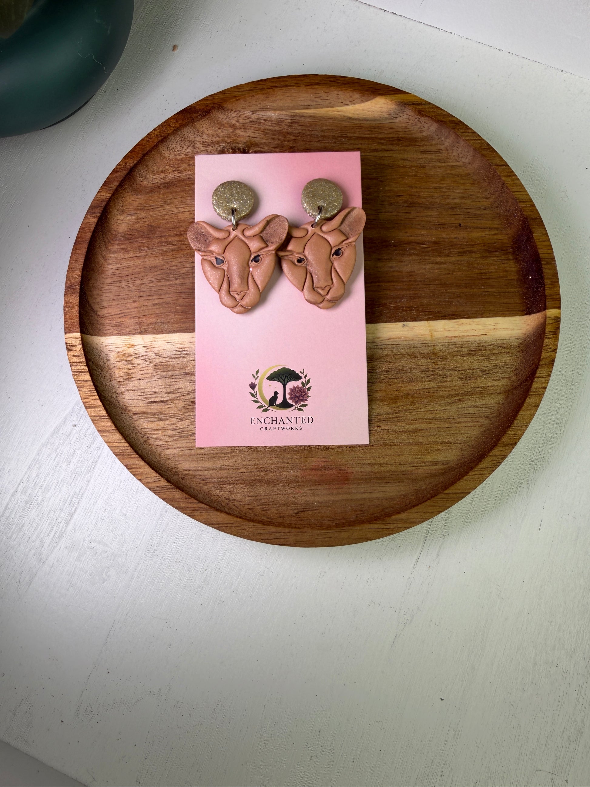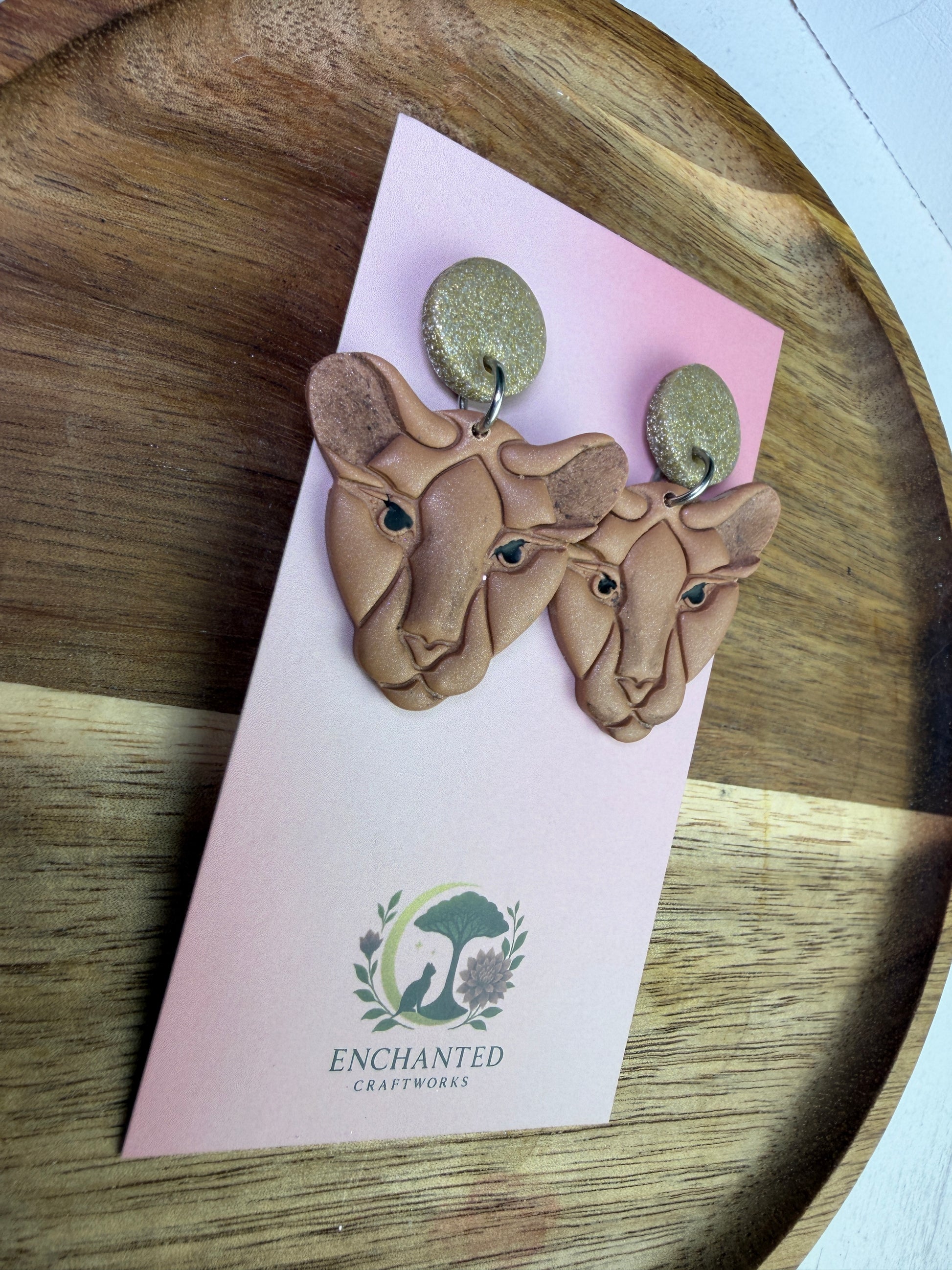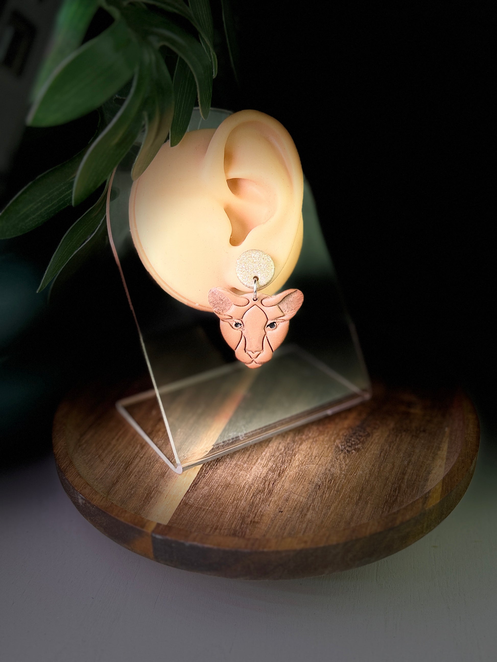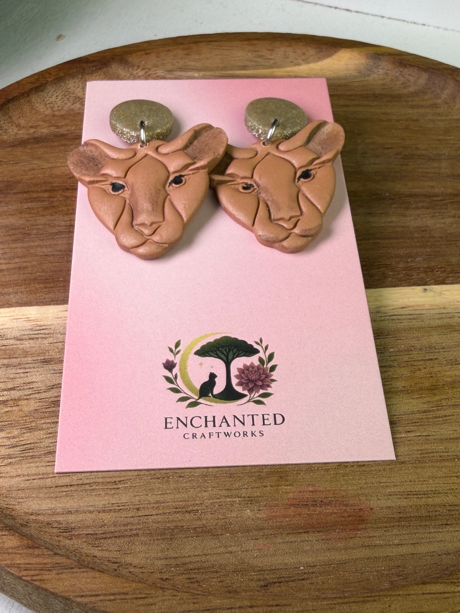 Golden Lioness Dangle Polymer Clay Earrings