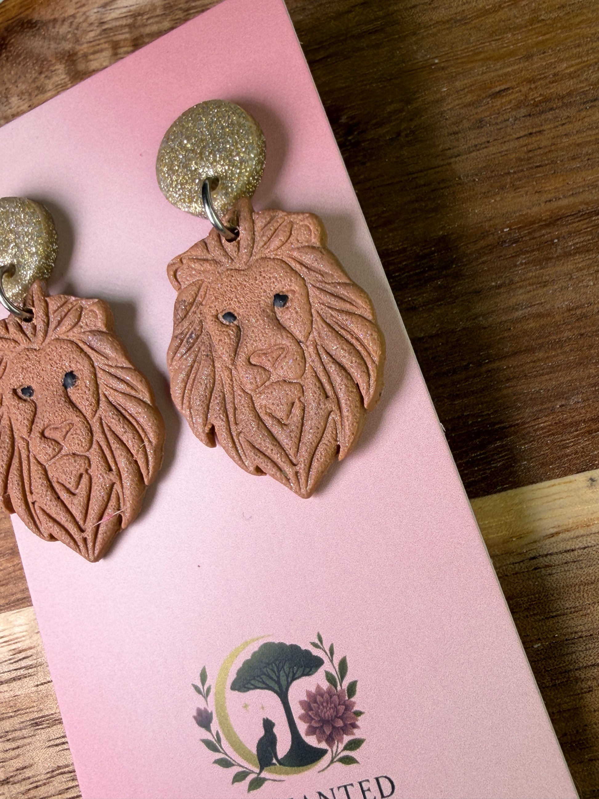 Leo Zodiac Lion Dangle Polymer Clay Earrings