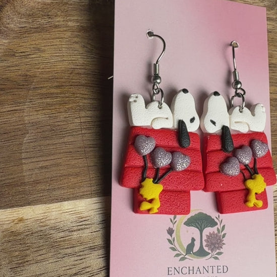 Snoopy-Inspired Polymer Clay Dangle Earrings